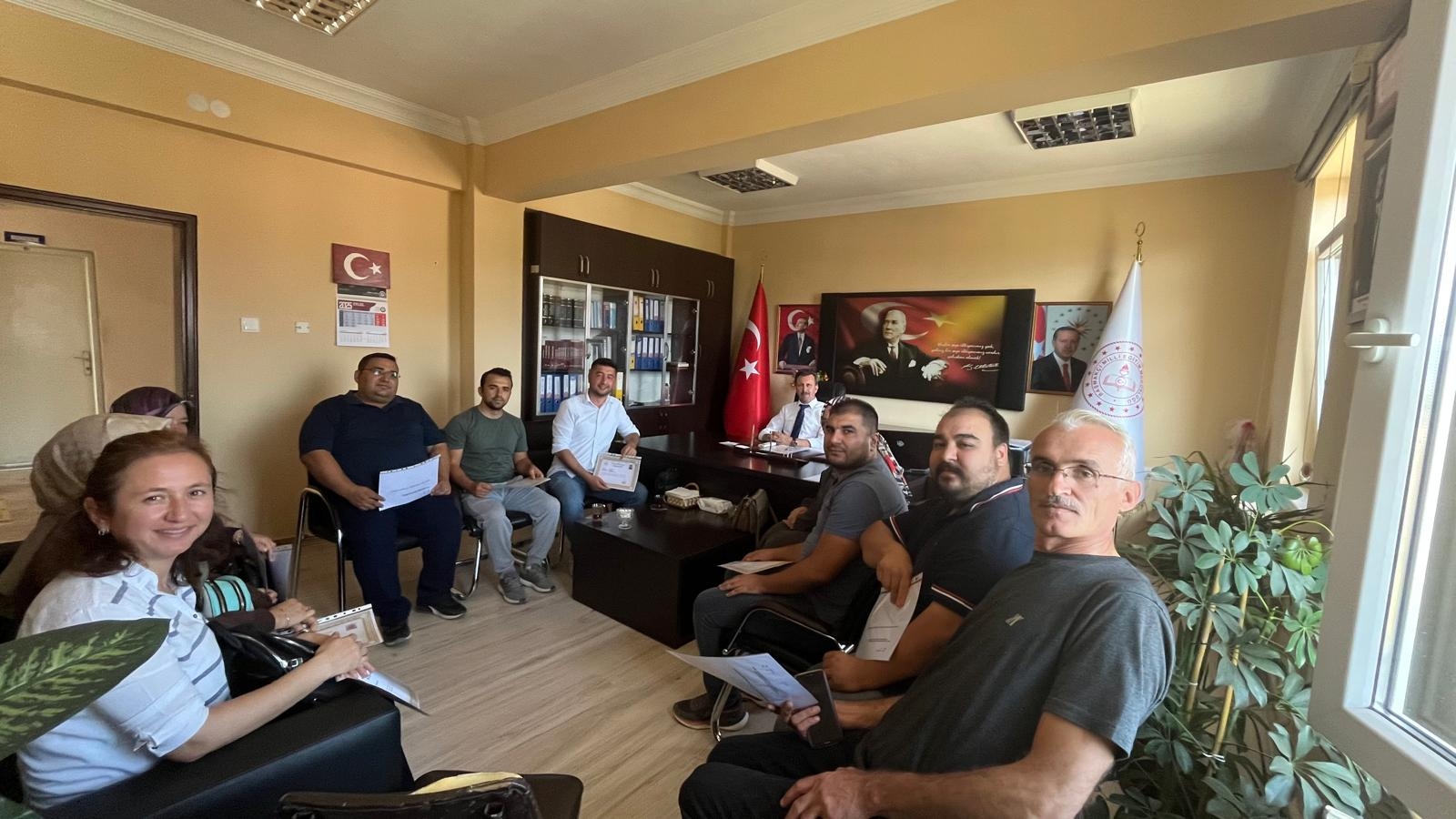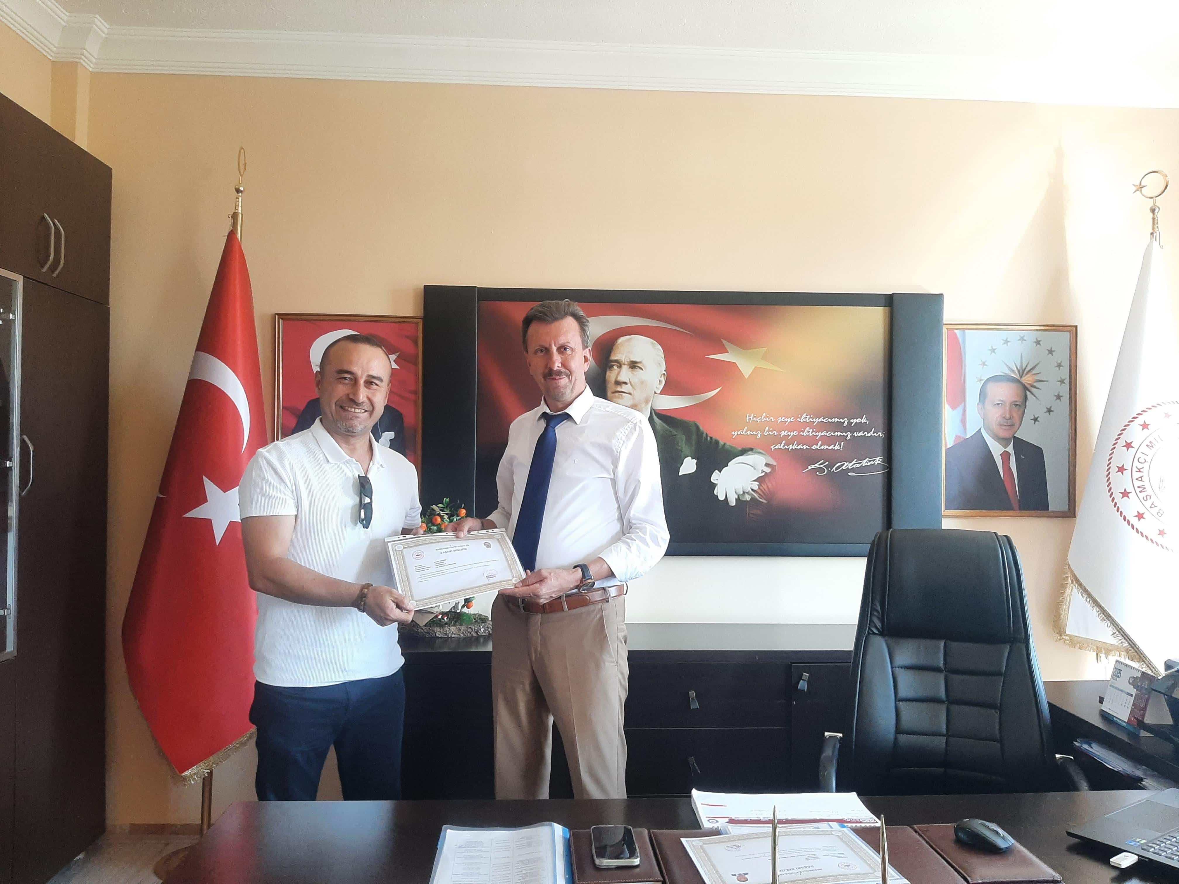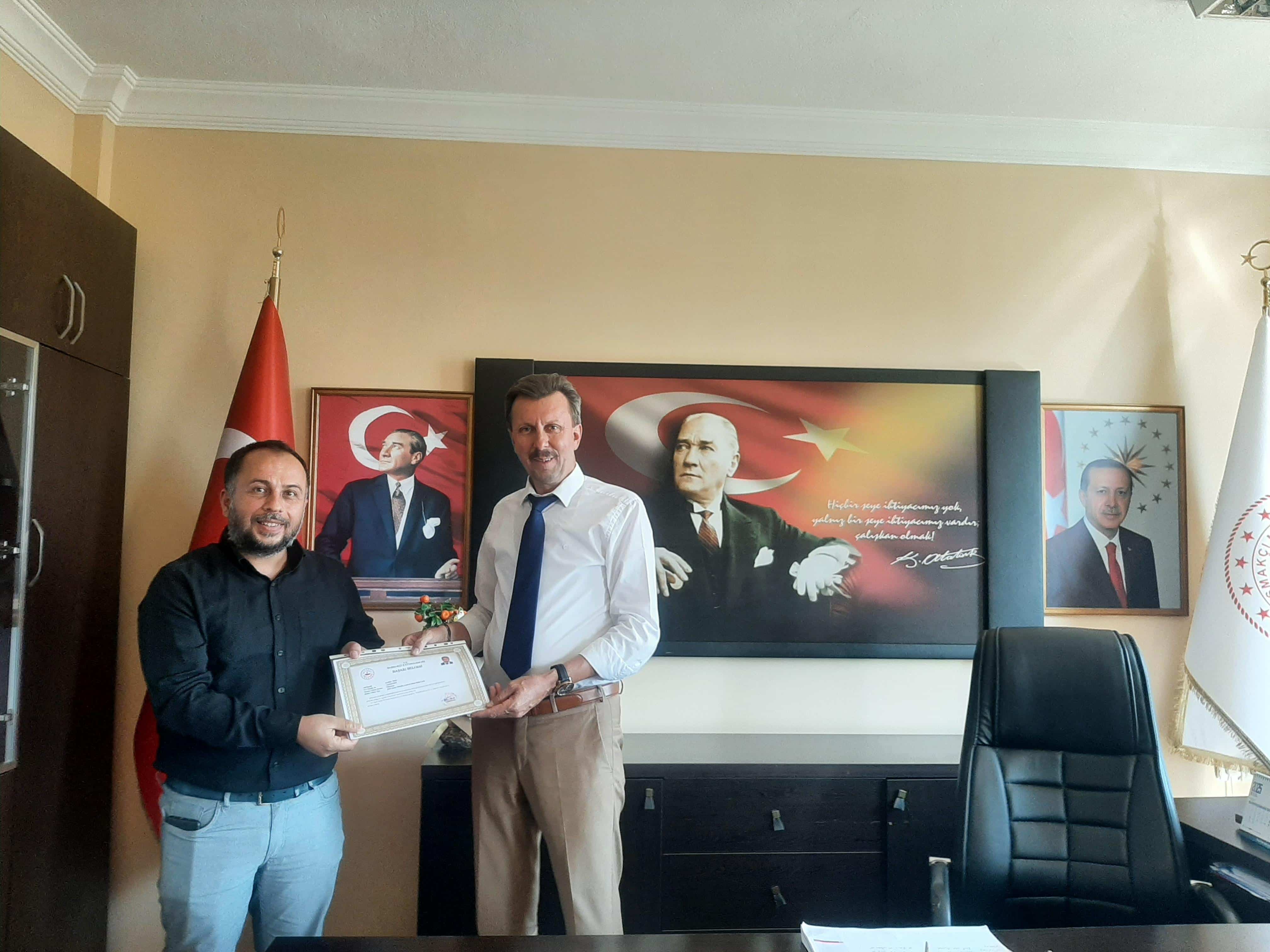 Başarı Belgelerini takdim eden İlçe Milli Eğitim Müdürümüz Yasin FİLİZ, öğretmenlerimiz ile okullarımızın yapmış oldukları çalışmalar hakkında sohbet ederek, başarılarının devamını diledi.