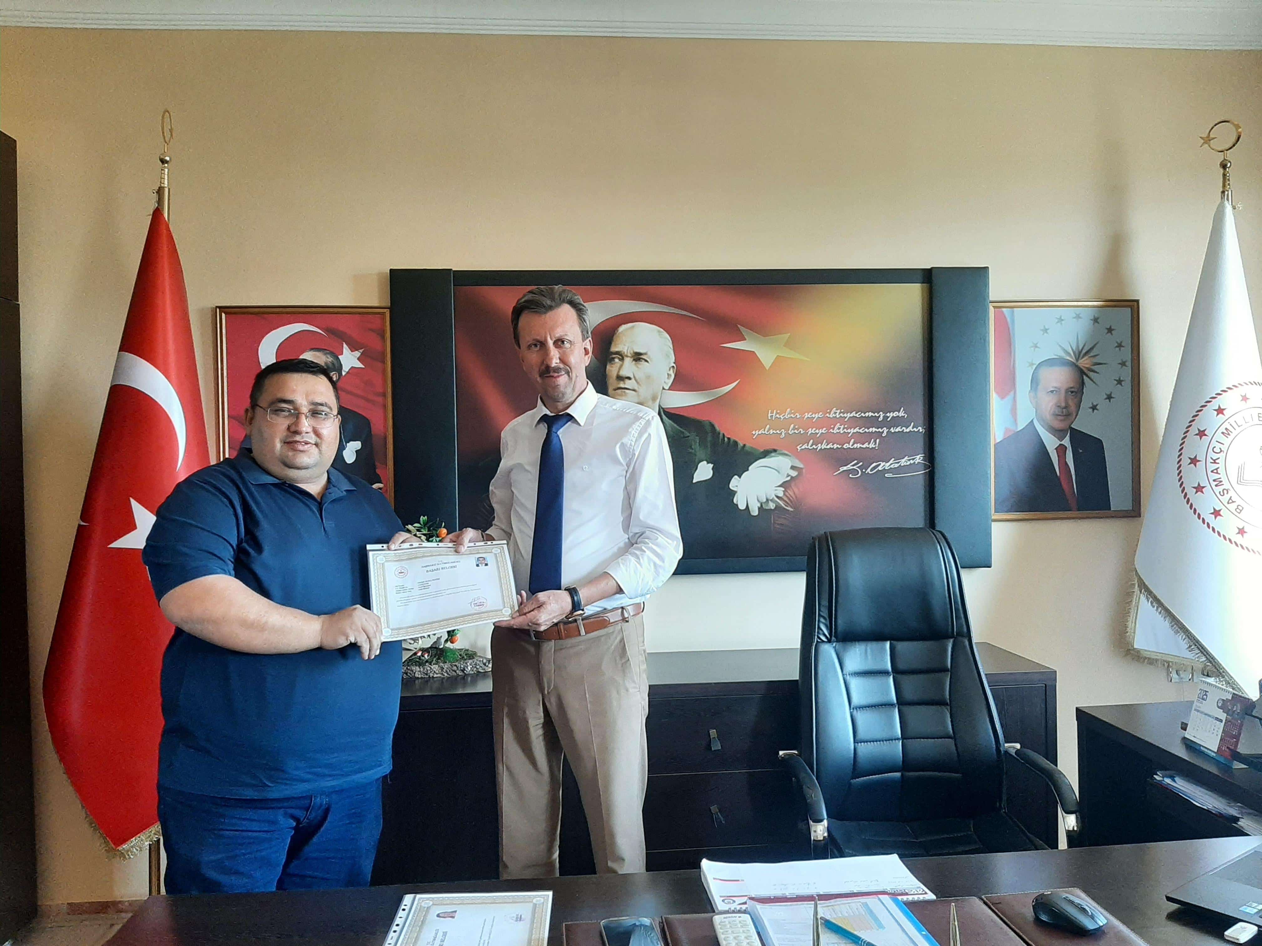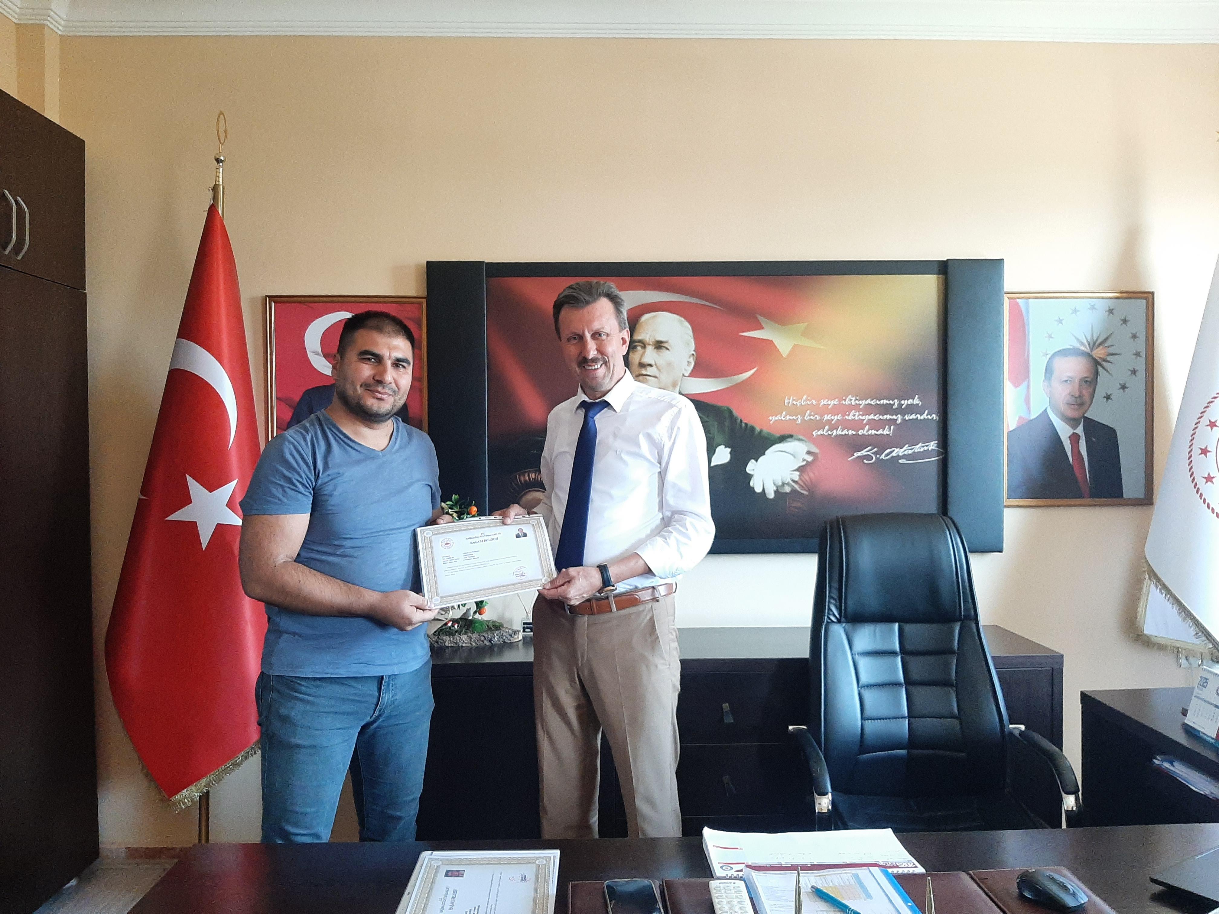 Öğretmenlerimizin Başarı Belgeleri İlçe Milli Eğitim Müdürümüz Yasin FİLİZ tarafından takdim edildi.